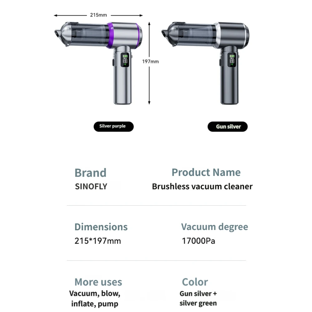 Car Vacuum Cleaner High Suction Power 17000PA Brushless Motor Portable Home Cordless Handheld Vacuum Cleaner for Car